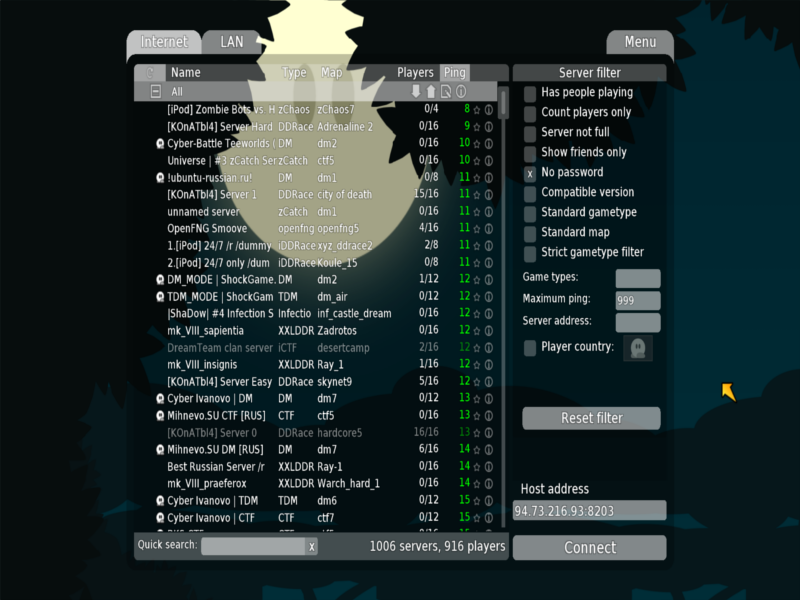 Новый клиент очень привлекает своим видом. Авторы откликнулись на предложения пользователей создали красивое меню с анимированной заставкой: ![]() И все же были хорошо сделаны опции: ![]() В них можно ставить на скин тату, изменять тело, глаза, ноги, руки, и верх. Авторы решили изменить сам браузер. Вернули его форму как было на 0.5.. и добавили множество иконок: ![]() Ну и наконец демки. Сам плеер не изменился: ![]() Ну клиент очень хороший достоен замены 0.6.x. Это был не полный обзор клиента. Ждите скоро выйдет сам клиент и вы все увидите. Статью подготовил Mr.Nobody